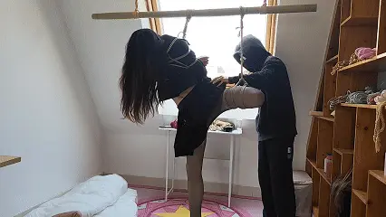 绑匪把捆绑好的人质放在阳台一夜,第二天醒来又被日式绑成了这副模样————