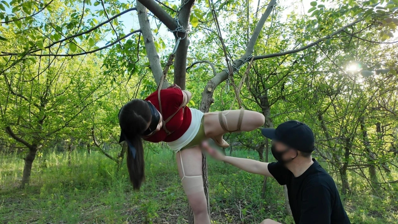 密谋已久,把佳佳带到小树林里面,树上早已经弄好了挂点,蒙眼单腿吊上之后,就由不得她了,屁股没打几下,佳佳m性大发,直说非常喜欢,享受打屁股的乐趣,震动的更加是娇喘练练,求主人带到房间里面继续TJ