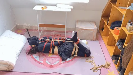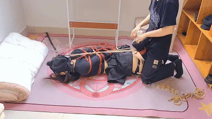 一颗露露子原创系列,露脐装蛋糕裙黑白鸳鸯过膝袜的露露突然接到一个不(那么好的点子……),要求被直臂绑在吊杆上,强制用分腿器把脚踝分开,不但如此,膝盖也要被绑在一起强制类似蹲马步的姿态。