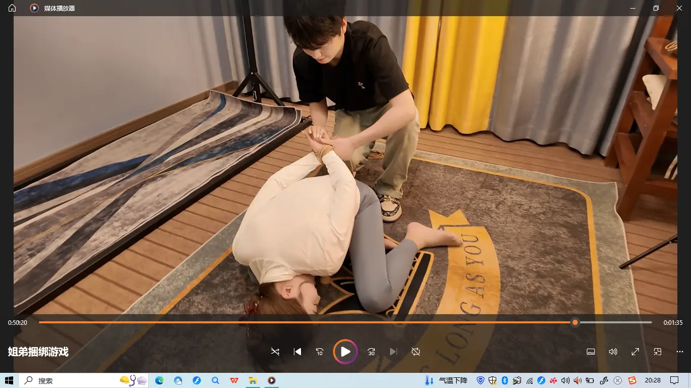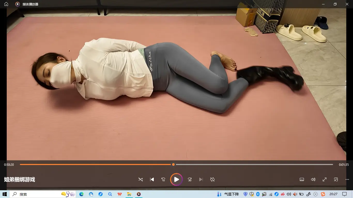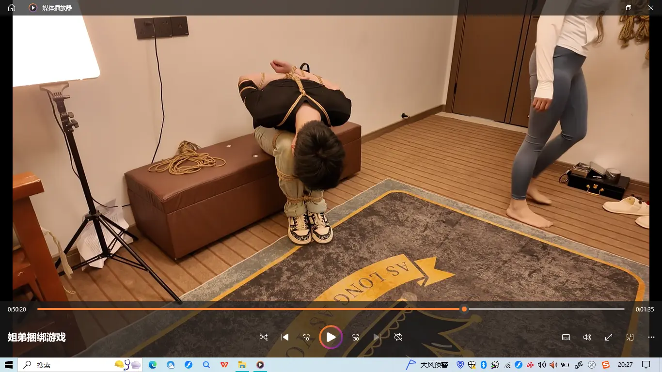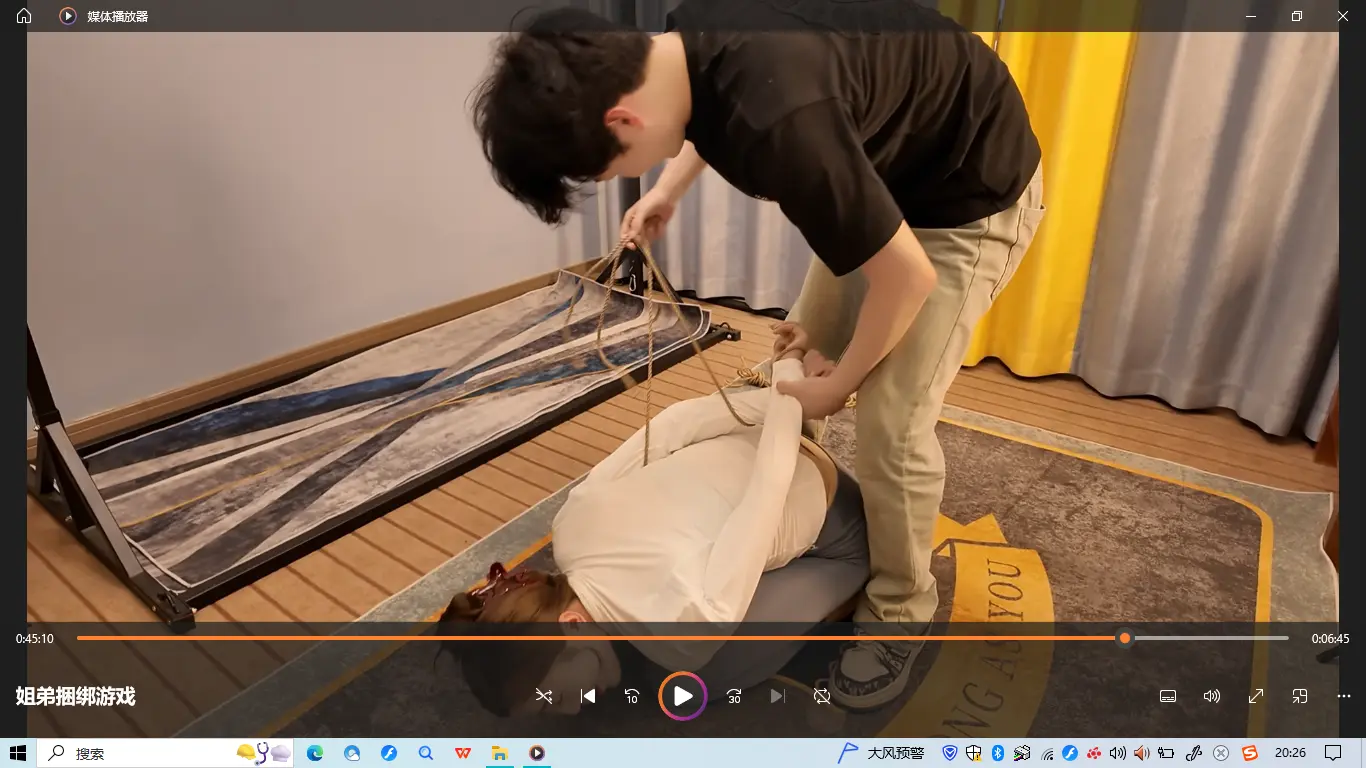 姐姐下班回家,弟弟赶快给姐姐开门,拿拖鞋,姐姐坐沙发上面看快递,到镜子面前欣赏了一下,然后练了一会瑜伽,坐到沙发上=上面自己尝试着用布条勒嘴,原来姐姐是一个捆绑堵嘴爱好者,先用胶带把嘴巴粘上,然后用带上口罩,自己把手铐带上背铐,然后模仿发出呜呜的声音,正觉得不错的时候,弟弟出来了,高兴的说,姐姐,你想玩在不叫我呢,说着不由分说,就把姐姐的腿捆了起来,用把嘴换了个堵法,摸着姐姐的脸夸姐姐真漂亮,接下来操作更是惊人,把姐姐一个人放置到地上,自己跑出去玩了,把钥匙把到沙发上,让姐姐自己想办法挣脱,还好姐姐练瑜伽,经过长时间尝试,把腿从下面套过来,终于挣脱了束缚,等弟弟回来,姐姐把弟弟骗到面前,一个擒拿就把弟弟按倒,带上手铐,吊起来一顿收拾,最后在弟弟不断的哀求保证下,放开了了,没想到反转来了,弟弟竟然又给姐姐来了个反杀,把手直接后手捆绑吊了起来,皮鞭,TK一顿收拾....收拾的姐姐娇喘不断
