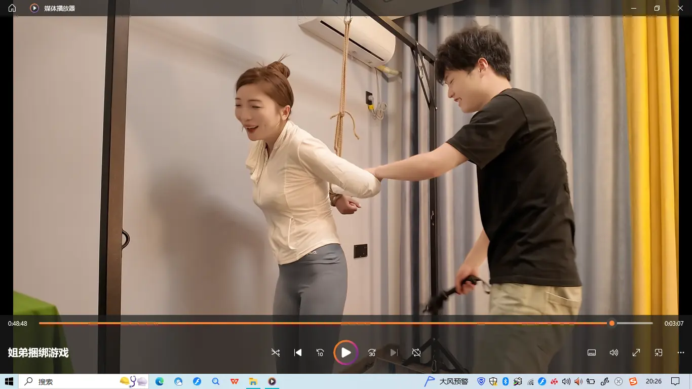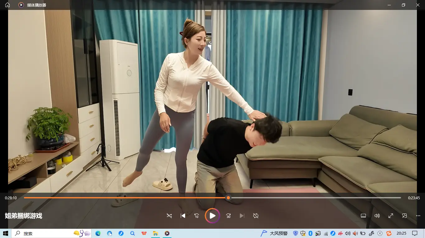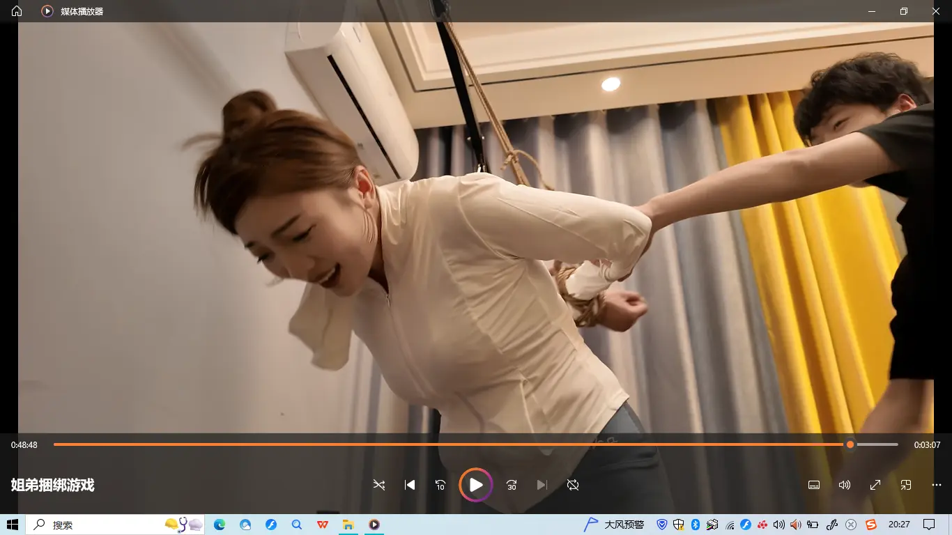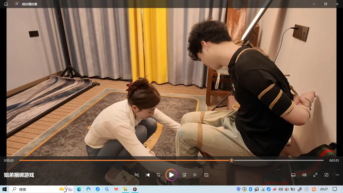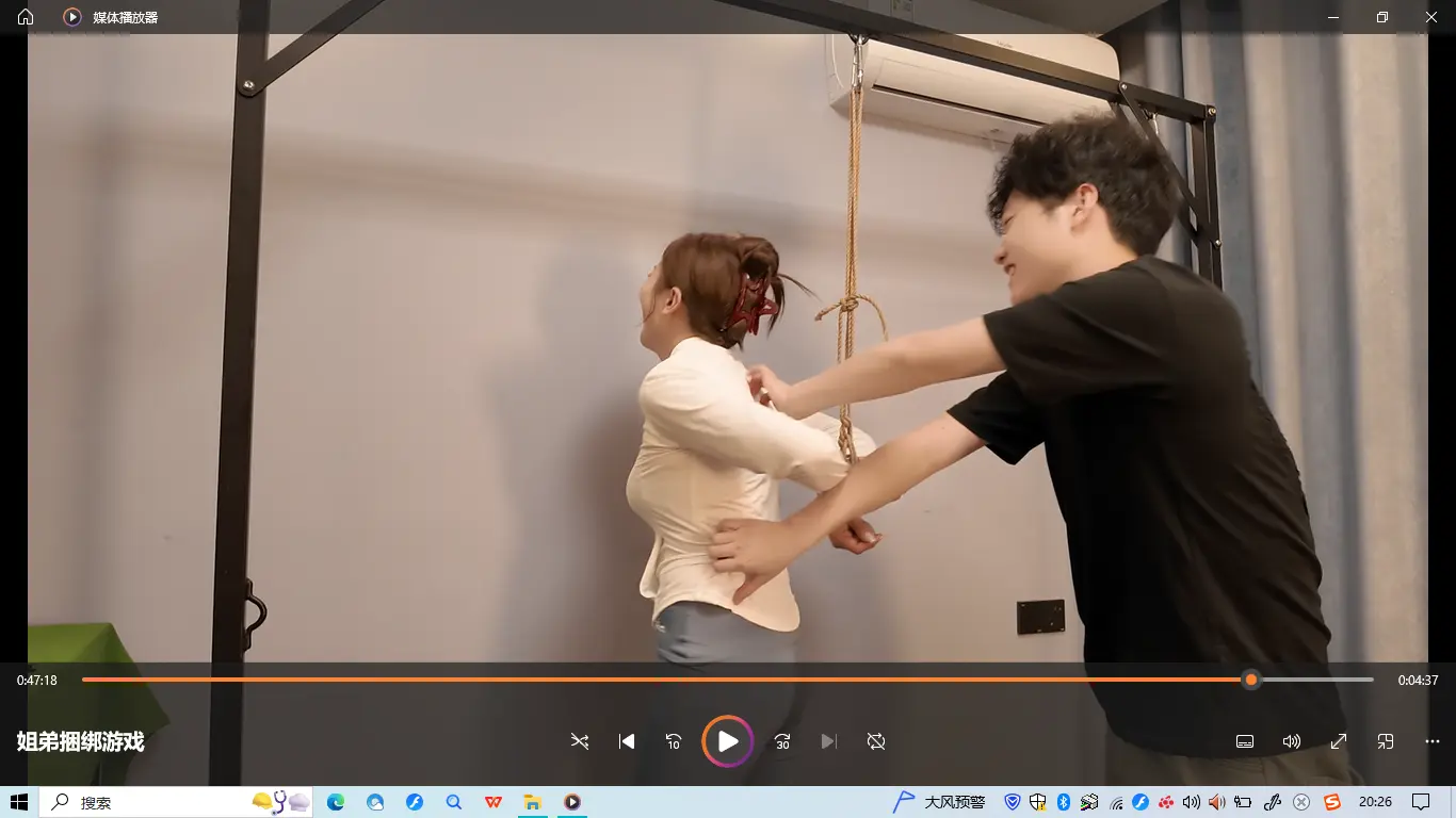 姐姐下班回家,弟弟赶快给姐姐开门,拿拖鞋,姐姐坐沙发上面看快递,到镜子面前欣赏了一下,然后练了一会瑜伽,坐到沙发上=上面自己尝试着用布条勒嘴,原来姐姐是一个捆绑堵嘴爱好者,先用胶带把嘴巴粘上,然后用带上口罩,自己把手铐带上背铐,然后模仿发出呜呜的声音,正觉得不错的时候,弟弟出来了,高兴的说,姐姐,你想玩在不叫我呢,说着不由分说,就把姐姐的腿捆了起来,用把嘴换了个堵法,摸着姐姐的脸夸姐姐真漂亮,接下来操作更是惊人,把姐姐一个人放置到地上,自己跑出去玩了,把钥匙把到沙发上,让姐姐自己想办法挣脱,还好姐姐练瑜伽,经过长时间尝试,把腿从下面套过来,终于挣脱了束缚,等弟弟回来,姐姐把弟弟骗到面前,一个擒拿就把弟弟按倒,带上手铐,吊起来一顿收拾,最后在弟弟不断的哀求保证下,放开了了,没想到反转来了,弟弟竟然又给姐姐来了个反杀,把手直接后手捆绑吊了起来,皮鞭,TK一顿收拾....收拾的姐姐娇喘不断