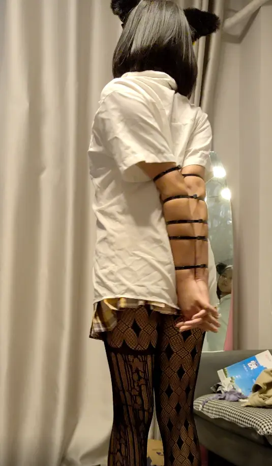 五花大绑 来回下蹲转圈展示 漂亮女模特 扎带超级欧式并肘 手铐超紧苏秦背剑