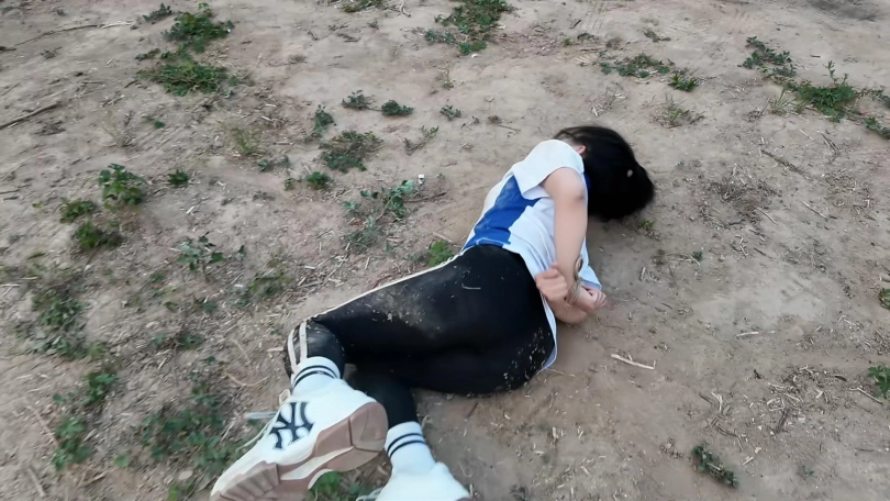 再次惩罚小遥,先把她固定到架子上Tk,,直到失紧,放置最后自己逃跑,被抓住,咋户外场地鞭打,脚踹,最后又绑到树上强告