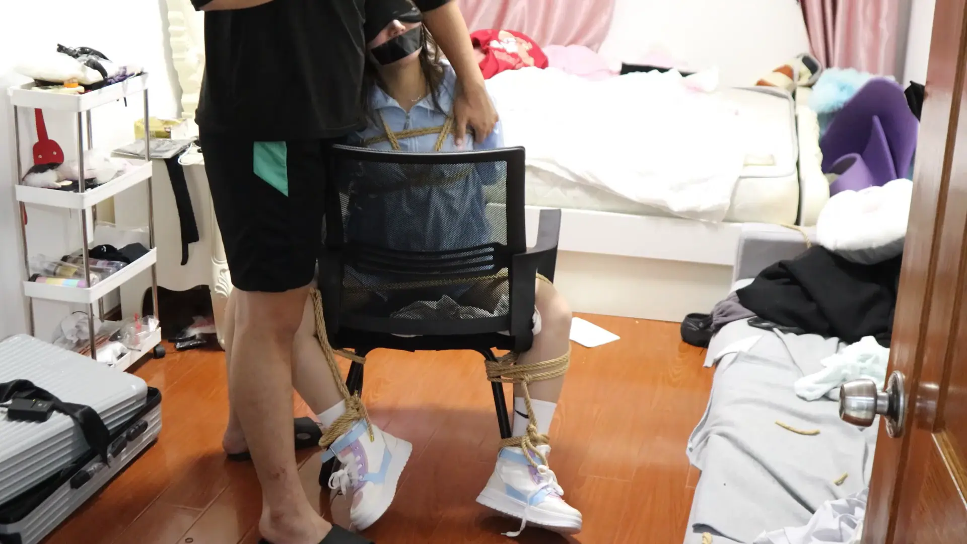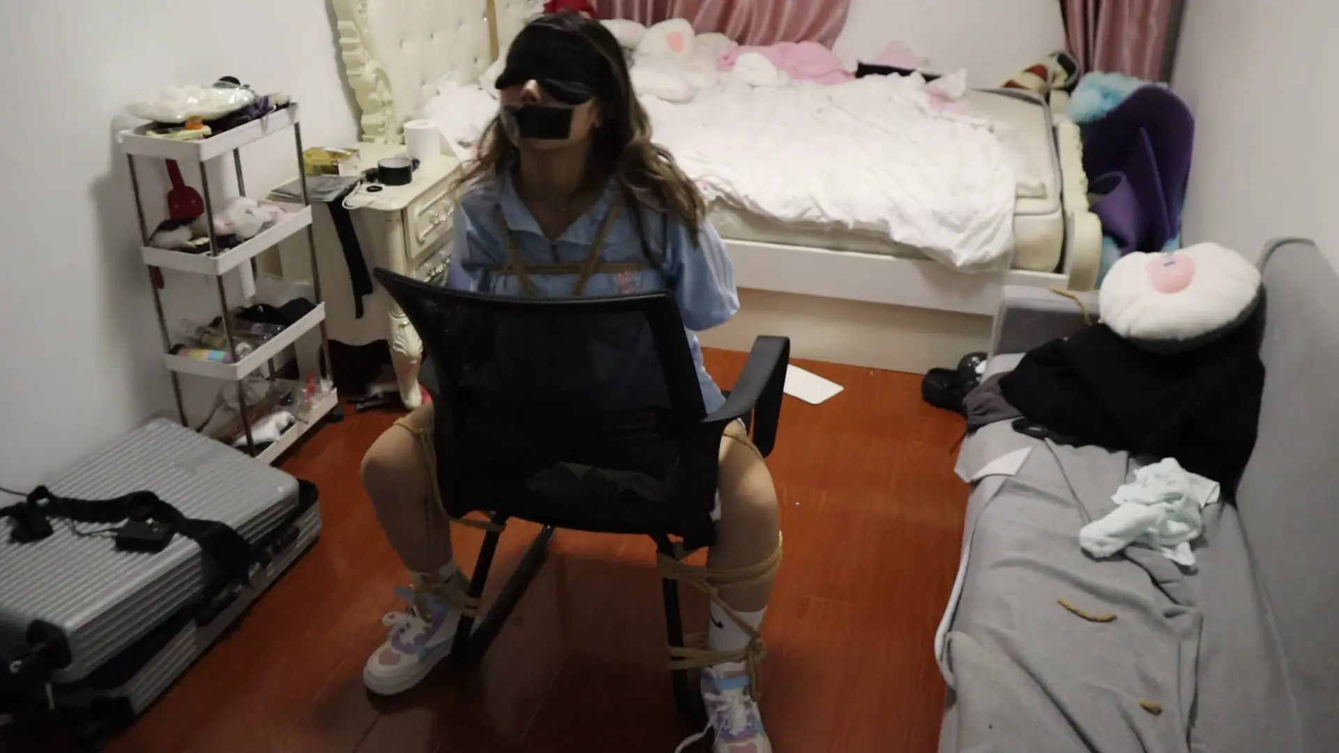 运动的元气的童颜[X_X]姑娘被捆的第一句话是:等会我还可以和你讲话聊天吗,答案是:不可以,你只会被牢牢捆住嘴巴被堵住发不出声音来,然后被调教鞭打虐待TK等惩罚才是美女的归宿