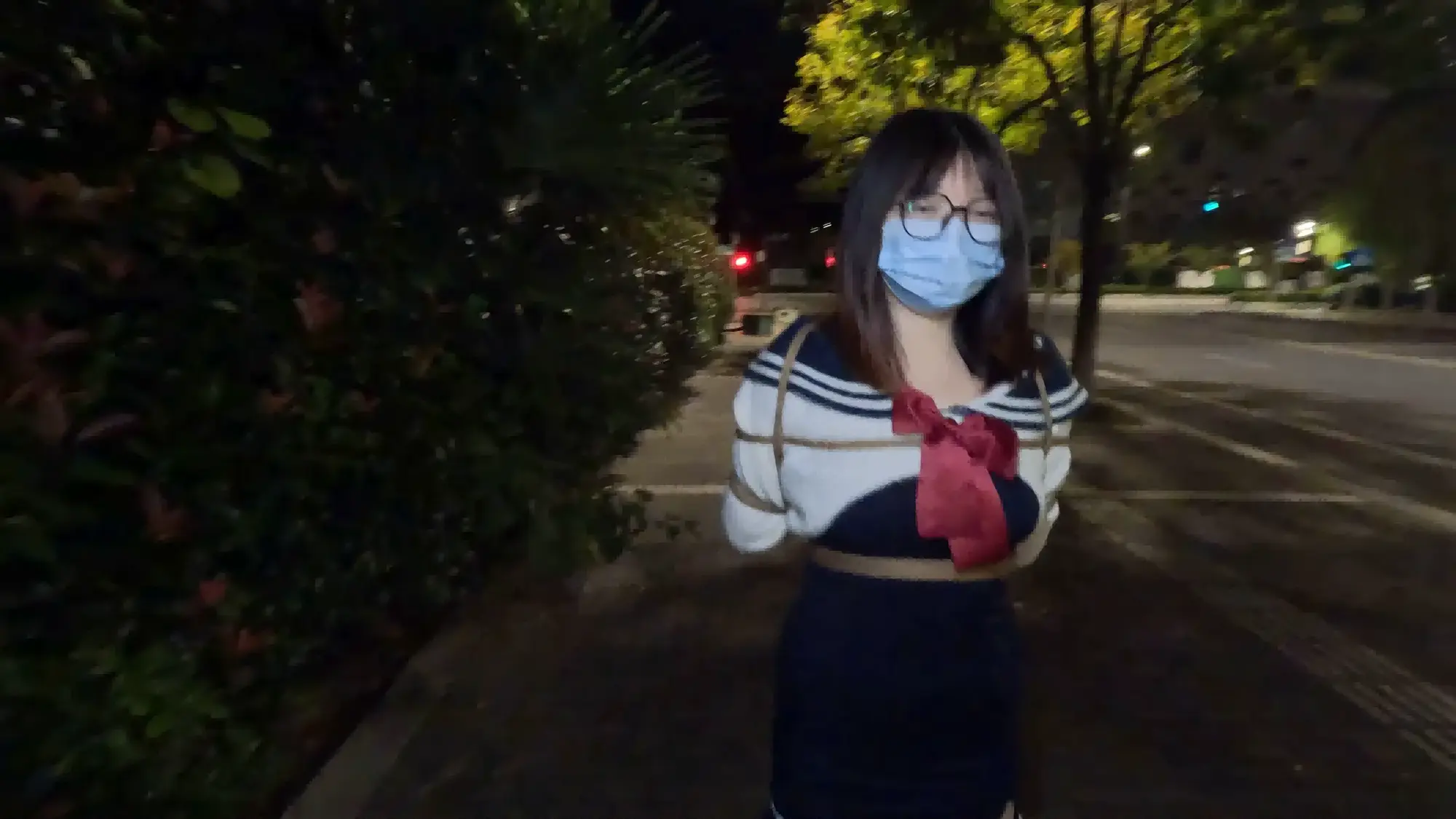【四月绳艺学院】小m的训练课程-户外专项训练,回去的路上还被迫漏出大灯泡