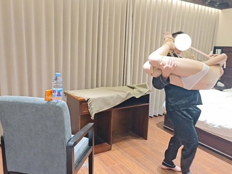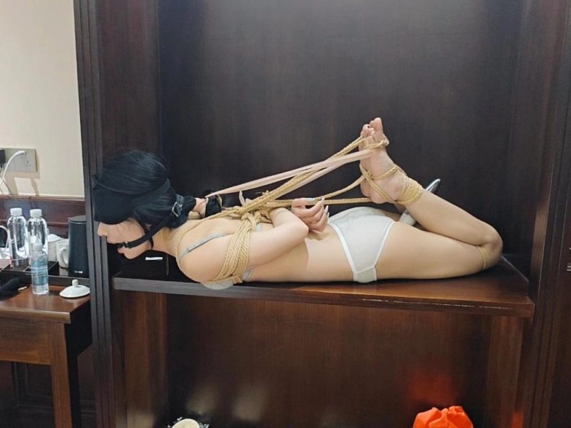 推开门一只被极限驷马捆绑在桌子上的m,嗷嗷呜呜的叫个不停,随着一系列的口舌,强高,途中突然她男朋友打电话来了,当接起来的那一刻她就后悔了,最后还是逃不过被绑着做最极限的运动,整个捆绑调教伴随着担心害怕度过,想想就刺激
