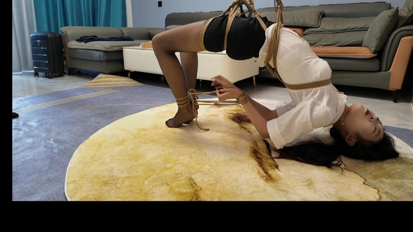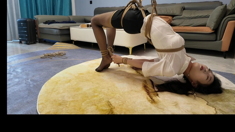 小夏反向驷马,第一次这样捆绑,这样吊,小夏柔韧性还是非常好的,完美的完成了客户的要求