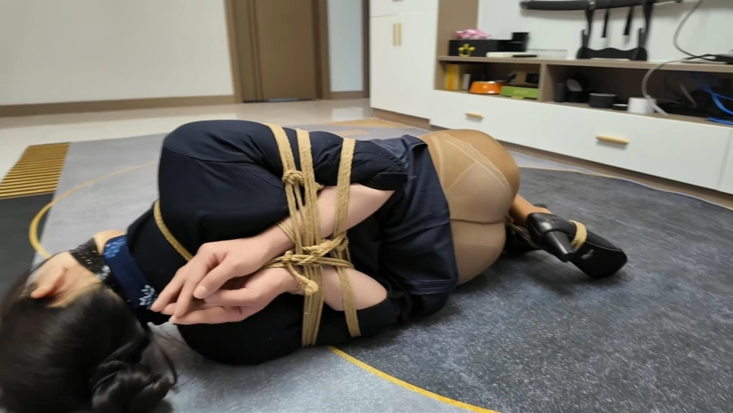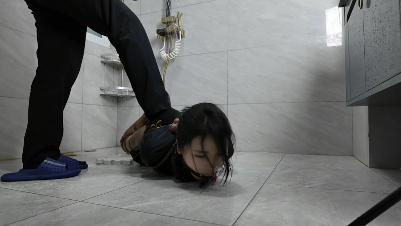 空姐十一被捆绑成后手观音M腿,堵上嘴在地上拼命挣扎,又被提溜到卫生间淋水,绳子遇水更加收紧