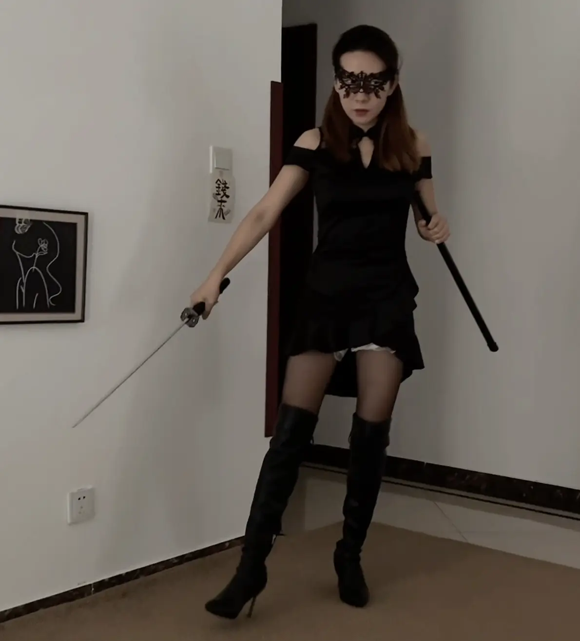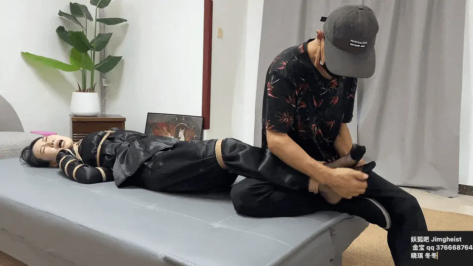 名模晓琪(琪琪、安然)演的女总裁大家都看了不少,有看过她穿上夜行衣饰演飒爽的女侠盗吗?头巾与面纱遮不住她发亮的冷白皮,宽松的黑衣裤(以及裤里黑丝)盖不住她曼妙的身段,而她精湛的武艺也当然也躲不过捕手的绳套陷阱和铁链麻绳,而刚烈侠女的不屈挣扎更刺激着他不安分的双手……不久后冬冬饰演的大姐拍马赶来,是英雄救美还是肉包子打狗——我倾向于后者,不过要等节后下集揭晓。