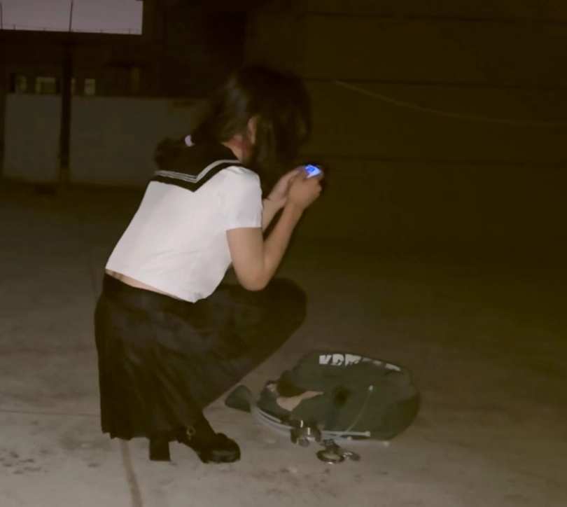 提前再后面塞满了,再用黑丝包裹住,穿上裙子和水手服,高跟鞋,来到这个不知道会不会有人经过的天台。经常听到电梯上下的声音,特别害怕有人过来看到我aaaaaaaa