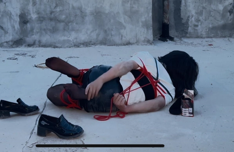 【柚里】小区天台屈辱折腿日式自缚教学&倒地挣扎滚满一身石灰&黑丝小皮鞋皮裙ol职业装