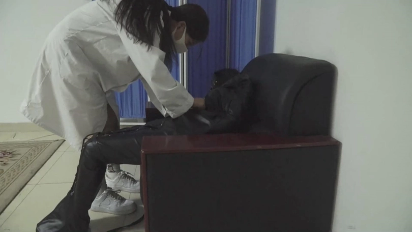 第二天一早,我嘴巴被堵的死死的戴上口罩,眼睛被肌肉贴贴住,再戴上墨镜,手脚都被紧紧的困缚着。最后披