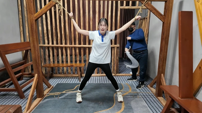 贝贝是一个非常可爱的小女孩,爱哭爱笑,在这场随意变换造型,SP加TK的游戏中,笑着笑着就哭了,打哭了又被挠笑了,一场下来几乎每个姿势都被折磨的哭去笑来,本来是让晓琴摄像,既然是盲盒游戏,突然想到来个双人SP最后一幕更精彩