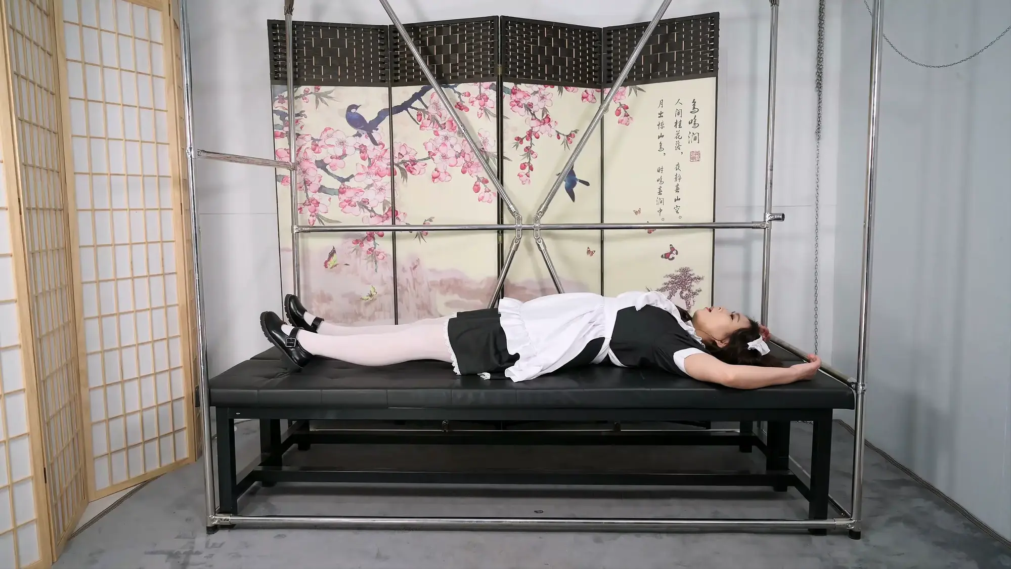 【撒琅制造】雪碧女佣装白丝四肢股绳五马吊缚--白丝、袢带鞋、TK、刺轮、放置