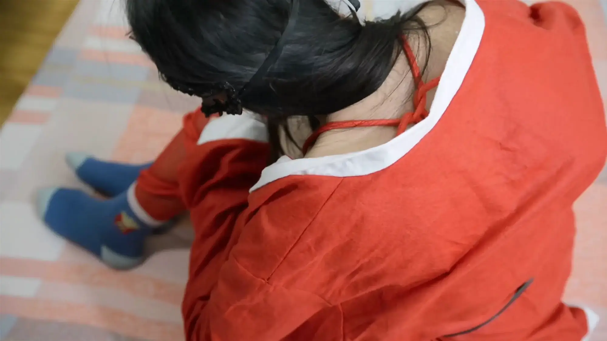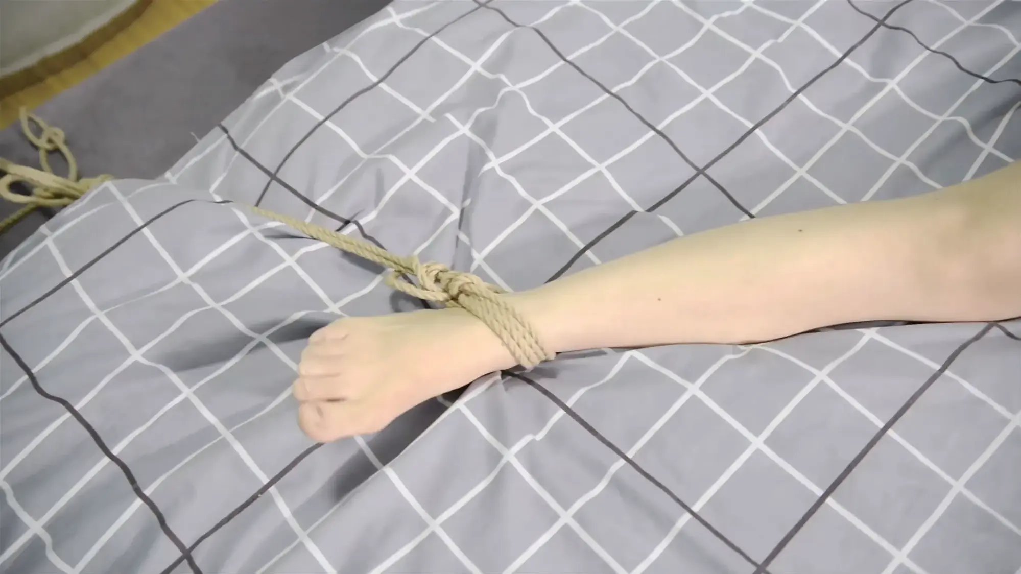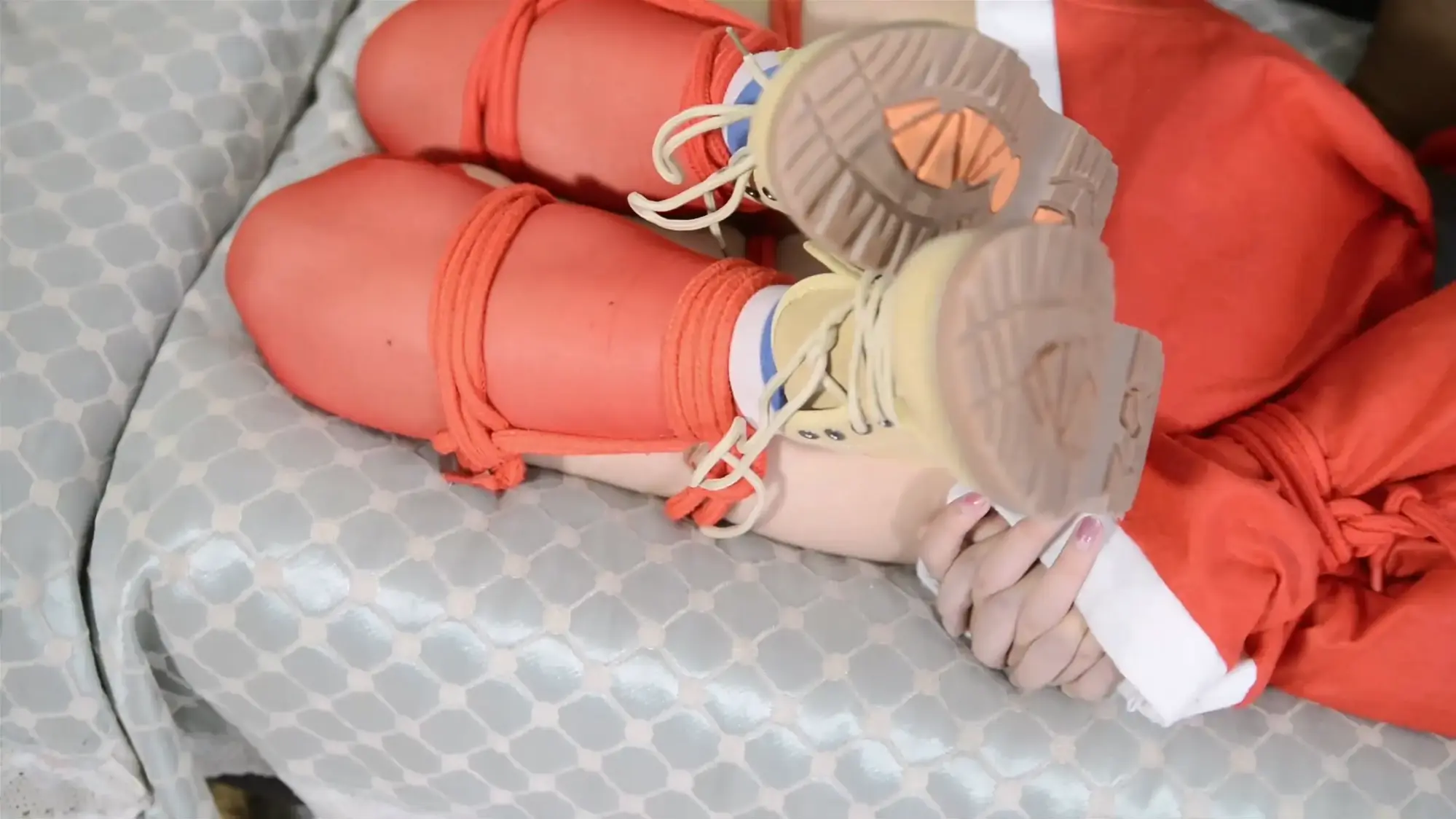 故事梗概:推销员小艺有着绳艺爱好,为了追求刺激,她把自己用龟甲缚捆好身体,外面穿上圣诞装,趁着圣诞节上门推销公司的产品,当她来到绳艺师的家里,不小心露出了身上的绳节,这马上引起了绳艺师的注意,他趁小艺还未出门,打晕了她并把她双手吊在楼梯上,并戳穿了她的小爱好,但小艺尽力反抗,随后被绳师捆绑在沙发上,小艺奋力挣扎,从沙发摔落下来,挣脱了束缚伺机逃脱,却又被刚好下楼的绳师碰个正着,又用麻绳把她紧紧捆住玩弄,然而这只是前戏,邪恶的绳师最后把她四肢分开绑在床上。