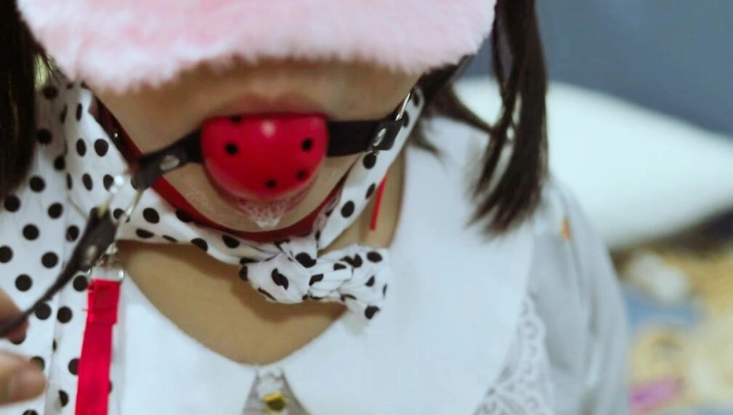 主动把嘴张开,戴上了大号的口球,嘴都快撑开了,并随之流出了口水,也流出了自己性格最真实的一面