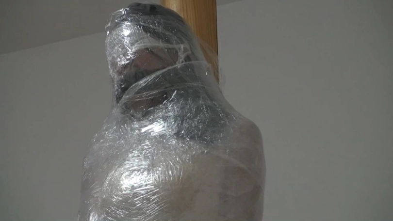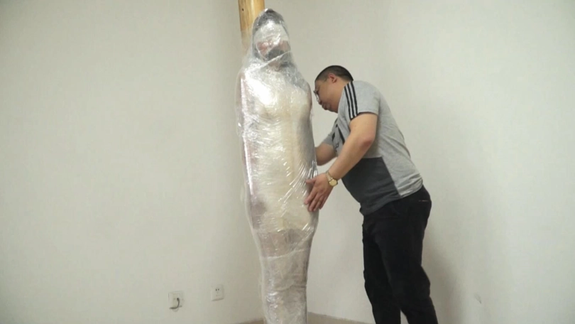 绑匪又用保鲜膜将她包在一根木柱上,保鲜膜缠着一圈又一圈。林丹丹几番挣扎,身体依然被紧紧禁锢住。呼吸不畅的她逐渐觉得身体渐渐麻木了起来......