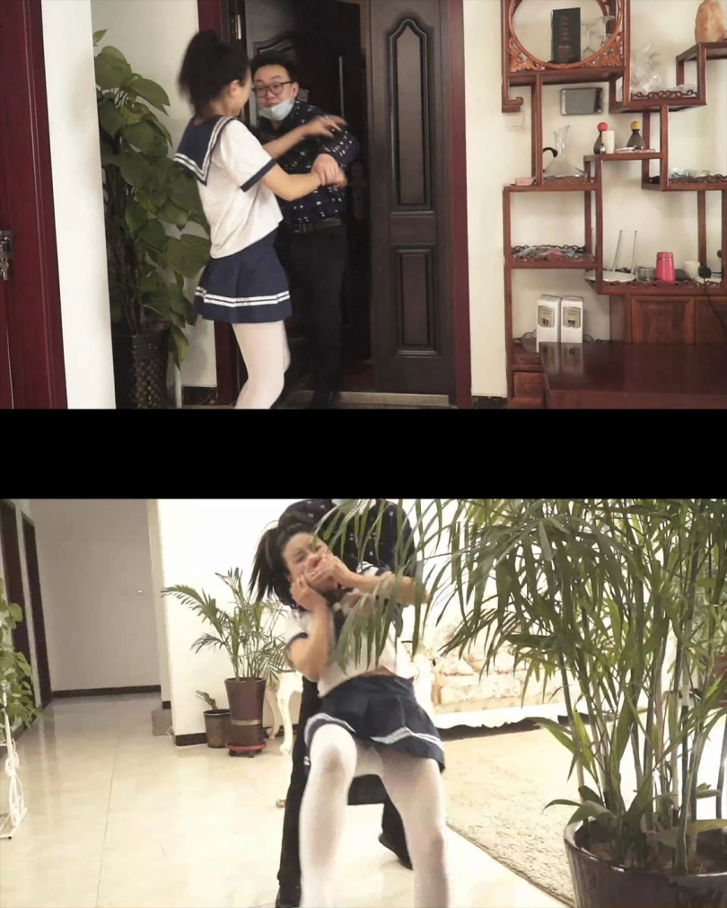 水手服美女被突然抓住,拖进了房间,美女被男人拖鞋厚棉袜套在手上,丝袜塞嘴多层胶带交错封死。白丝美女被捆绑囚禁玩弄娇躯,挠痒丝袜美脚,逃跑被发现有被长筒袜把手脚都套上,多层包裹捆绑让美女完全没有逃走的机会。