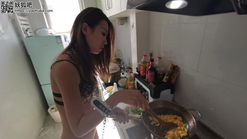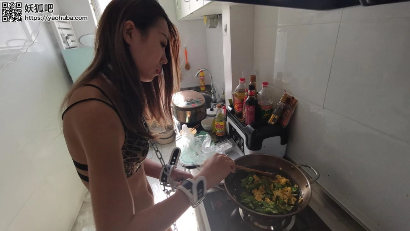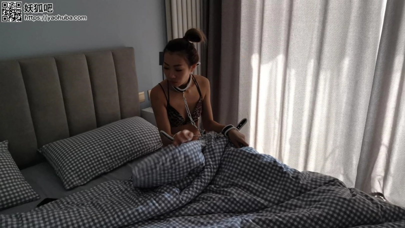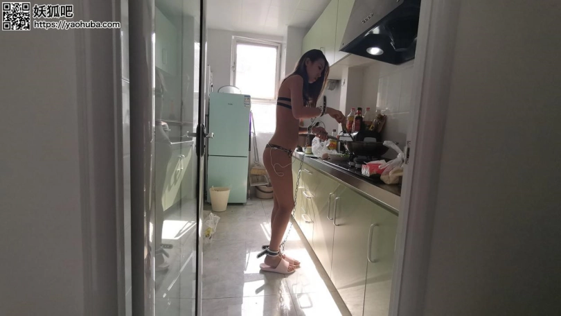 清晨奴戴着镣铐从床上起来,在隐秘部位塞进电动小玩具并打开开关,在强烈的刺激下艰难的做着饭,并不断的发出呻吟声。最后在沙发上放开自我,自己嗨起来。。。