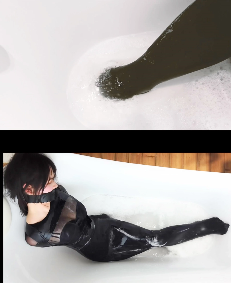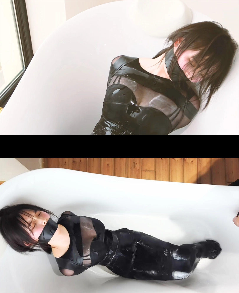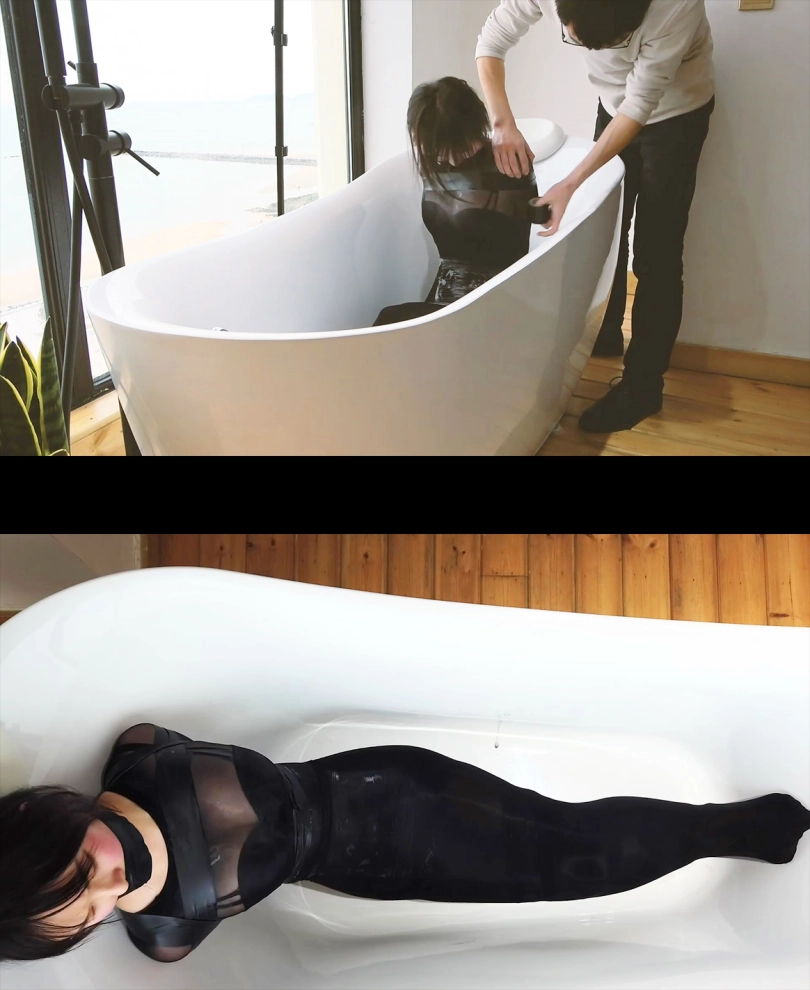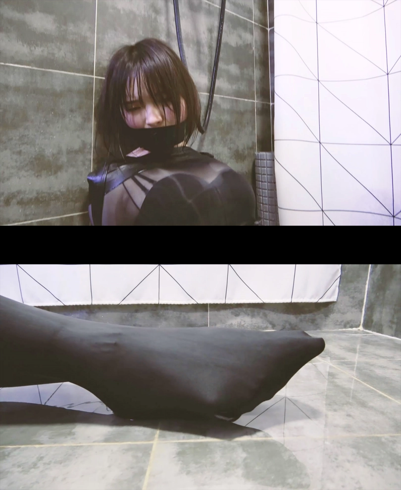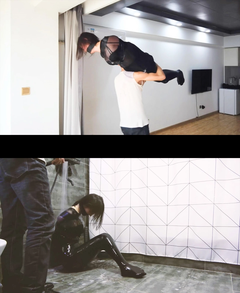 美女被黑丝套完全包裹,美女被包裹成丝袜茧,被男人用水冲美女敏感部位.