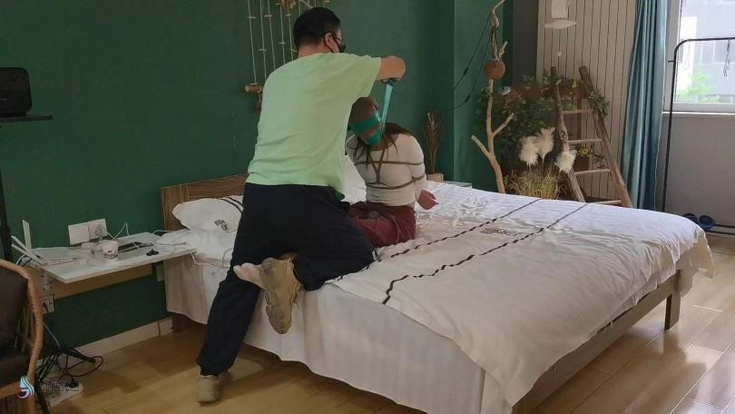 女贼进入一房间都偷东西,发现桌子上有绳子,棒棒等奇怪的物品,正当她奇怪时,她听到门外的脚步声,慌忙的藏了起来。男主回到家中,女贼想趁着男主不注意时逃出去,但被男主抓回来捆绑起来。男主是个有特殊癖好的人,他用丝袜套在女贼的头上,用胶带缠绕她的眼睛和嘴巴,用棒棒刺激着女贼,又脱下女贼的鞋子,抚摸亲吻着女贼的白棉袜脚。最后将女贼驷马捆绑在床上,下面继续用棒棒刺激,准备洗澡后回来继续TJ女贼。女贼偷窃不成,反倒成为男主的玩物。