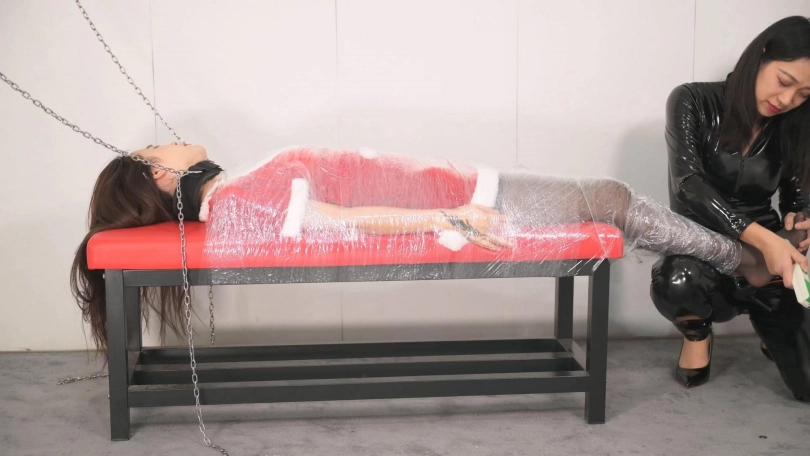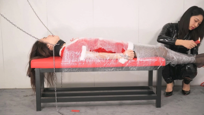 圣诞夜,沐小雨又变身女王祸害言妍啦。沐小雨柔中带刀的调教手法堪称一绝,言妍竟被她不知不觉解禁了滴蜡,真是佩服!性格内敛不善言辞的言妍被保鲜膜层层包裹,没有半点反抗之力,只能默默承受初次滴蜡的刺激,她扭动手臂试图躲避,但只能微微扭动胳膊,发出柔弱的呻吟。对言妍来说,这是个大“惊喜”,在这之前已被牟小雨用刺轮和电击器轮番不停折磨过了,本以为撕开部分保鲜膜是要放开她,迎来的确实更大的刺激,反差感拉满。本片风格依然唯美,言妍在开始的时候无意间的动作露出平面拍摄的功底,随便截图都可以当写真了,同时也夸一夸本次女S沐小雨,给我们带来的真惊喜!