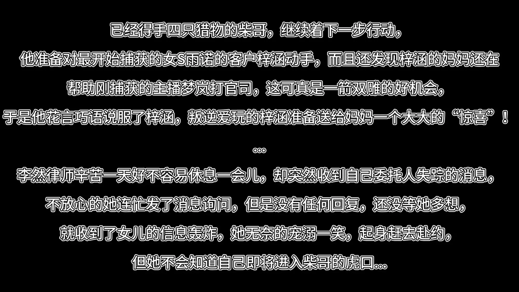 他准备对最开始捕获的女S雨诺的客户梓涵动手,而且还发现梓涵的妈妈还在
