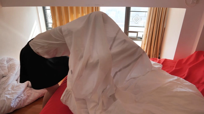 【小驴】裸足丝袜睡袋、床单丝绸全包