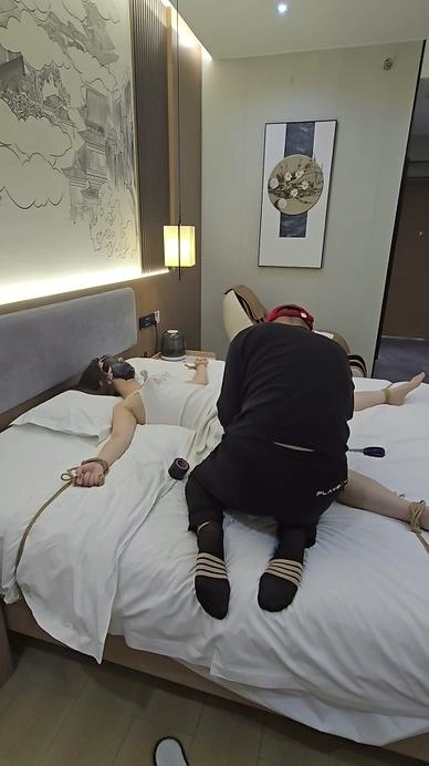 【小黑】嘴里塞着袜子,胶带堵嘴蒙眼,床上大字缚,一直呜呜说话,听不懂说的啥,玩具放在最敏感地方,放置反复折磨,素人真实反应。