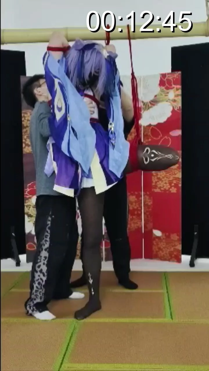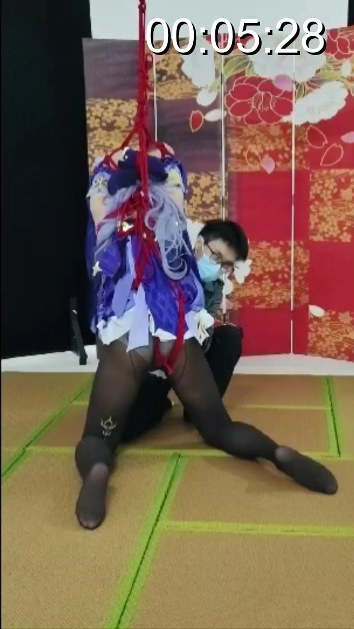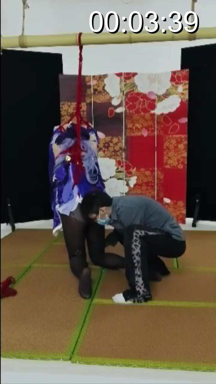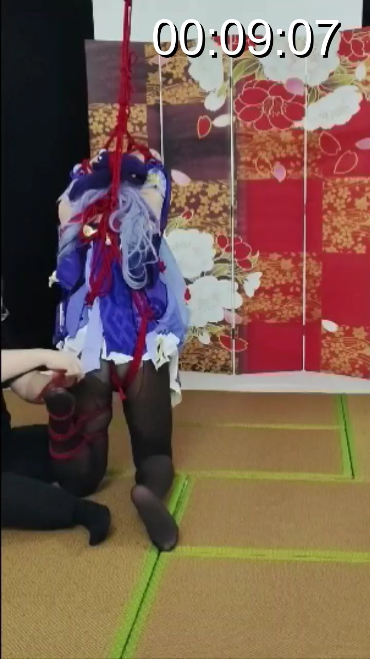 刻晴被捆绑后吊在竹竿上,跪也跪不下站也站不起,两难,还被人戏耍,最后更是让她在很滑的榻榻米上强制单腿站立