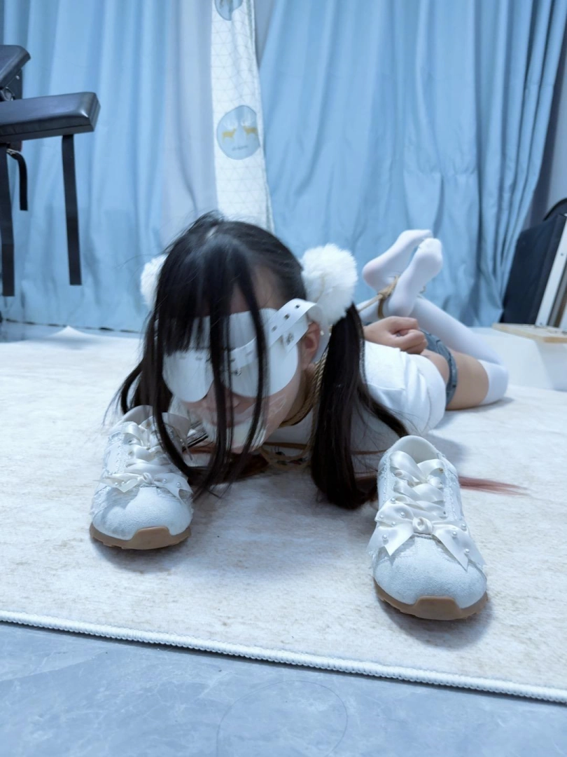 后面妹子坐立难安,还想尝试自己解开,但只能解开松一点点,完全没有任何脱缚可能~