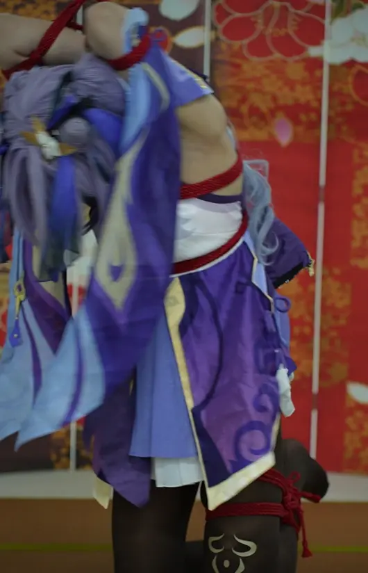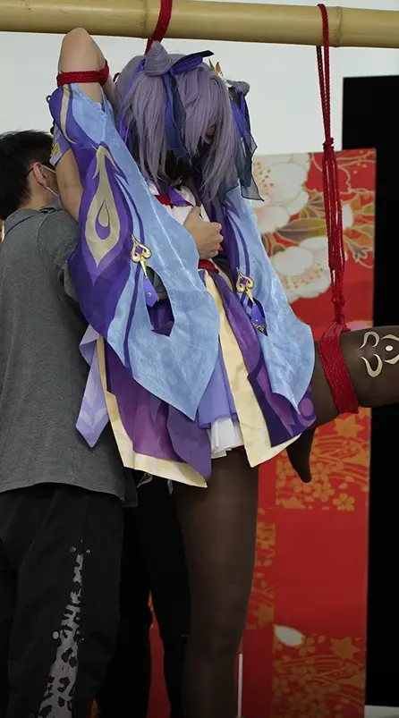 直播中的刻晴被大哥一份礼物要求吊起单腿,还不满足,强制跪立后是强制单腿站,还有人对她上下其手,而她只能无助被调戏