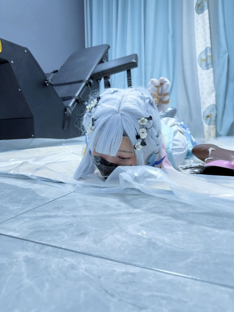 因为在场景2中挠吐了,收拾了一会,重新堵嘴(这次拿掉了堵嘴物改成胶带封嘴了,不过也是同样的手法多层加固)
