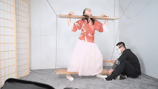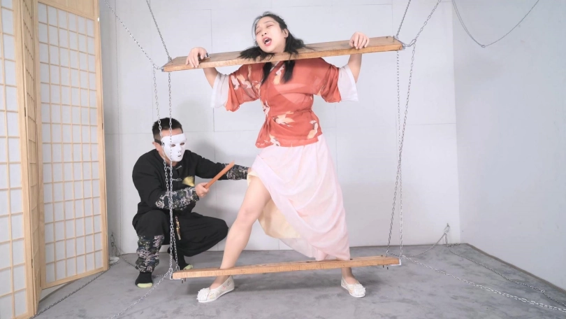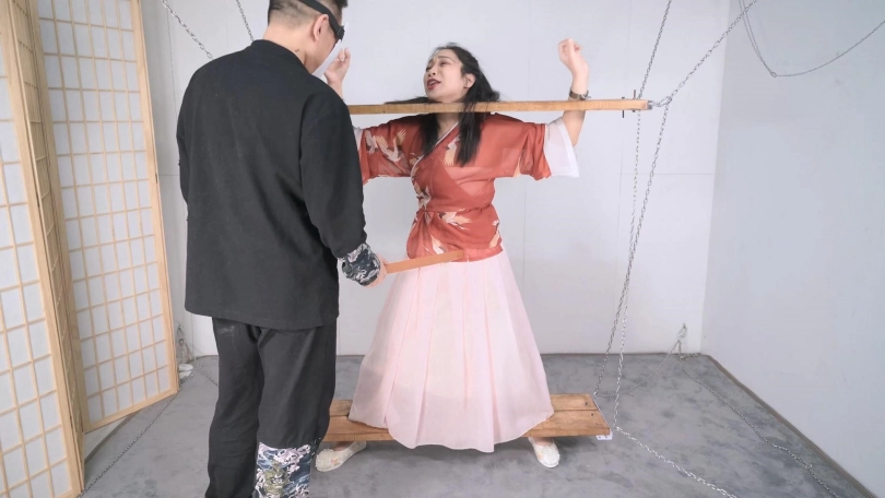 这套古装好似有魔力一般,沐小雨穿上就像戏精附体,表演欲爆棚,我这老演员都差点没接住,微剧情有点意思,不做过多介绍。单说这木枷组合,头一次用铁链连接吊起,固定作用明显,还有足够活动空间,据说古代犯人带着木枷时间过长,能够被活活卡死,我不太相信!于是顺着她的剧情,把沐小雨和木枷一起解下来,还真让她找到了求生姿势,就不知道如果戴着我这套厚重木枷能坚持多久了。