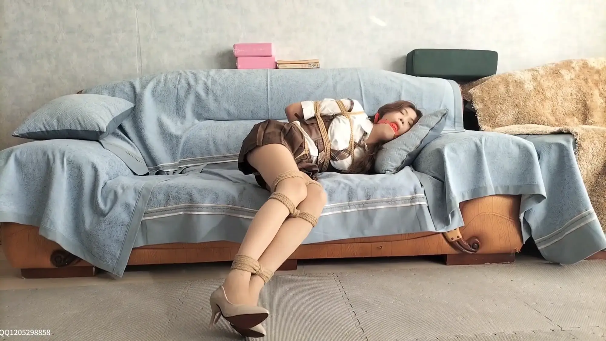坏人评价着捕获的猎物,之后,希潼被换上了精致的学生西装裙,