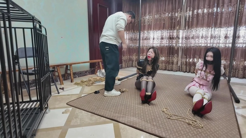静雪和静雯正遭受着王伟和刘磊的“疼爱”