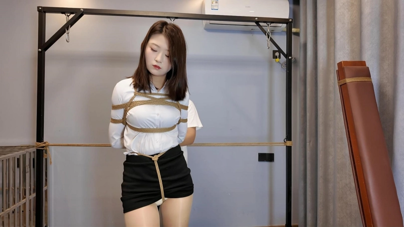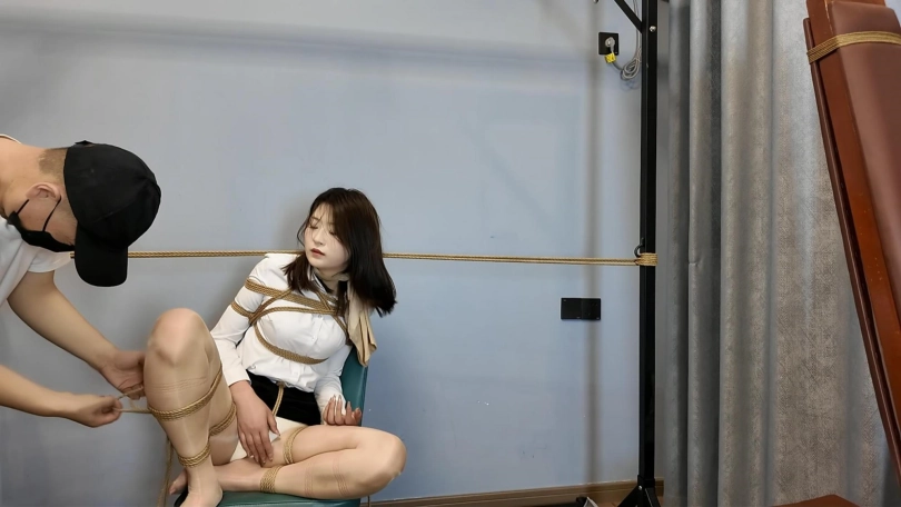 给晓琴进行M腿捆绑吊,这个姿势非常考验模特的耐力,晓琴也是不辱使命的完美完成