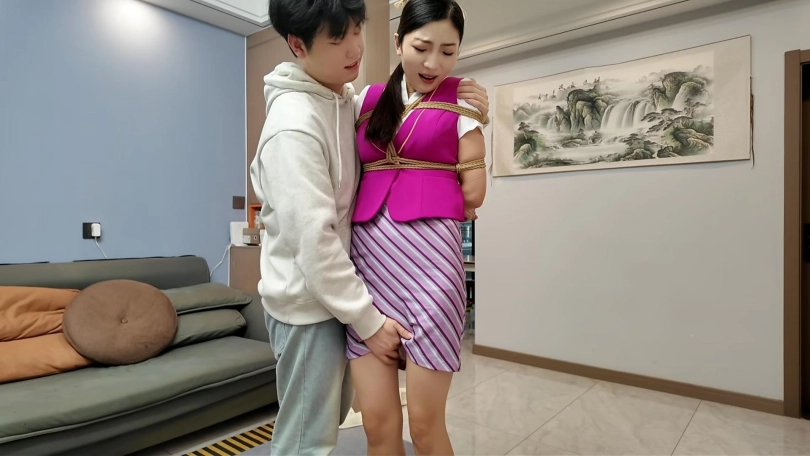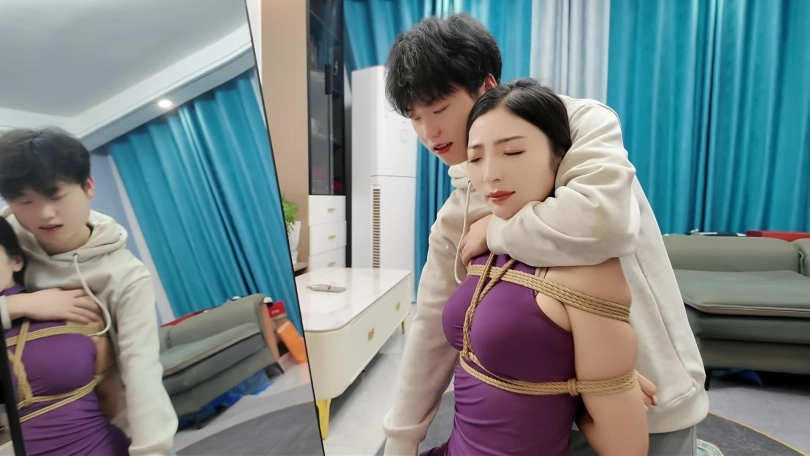 自从妈妈为了给儿子治病,被儿子捆绑了一次之后,睡着就会做梦,想着被儿子捆绑的样子,幻想着那种奇妙的感觉,这天正在做梦,被客厅声音吵醒,出来发现客厅不知道啥时候进来一个小偷,刚想制止,被小偷拿刀威胁,捆绑起来,小偷发现女主颇有姿色,忍不住玩弄起来,正在危险的时候,儿子回来了