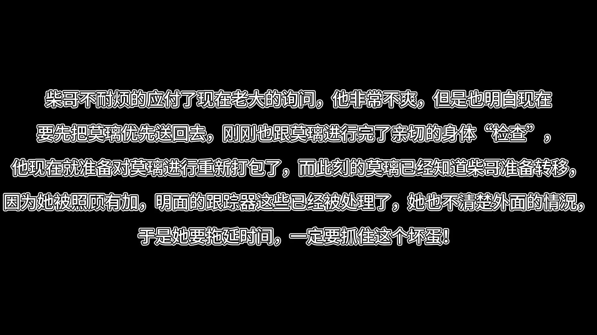 被柴哥点破身份的莫璃,此刻已被带到柴哥临时的据点,