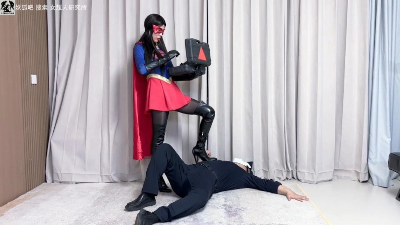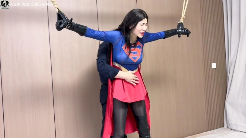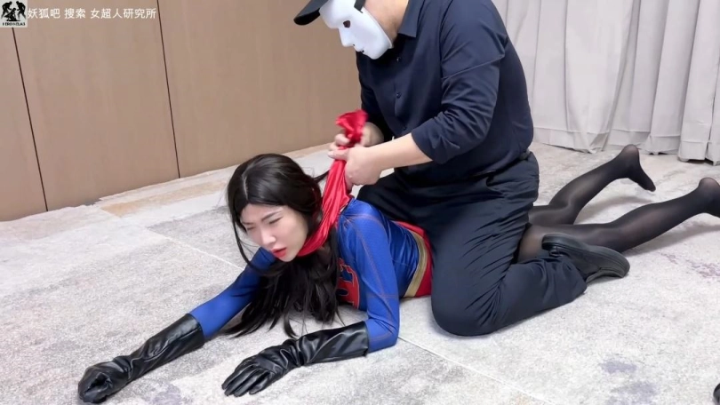 醒来被捆绑,靴子被脱,敌人玩弄腿和脚、揉腹摸臀,她嘴硬反抗却渐渐呻吟昏厥。敌人放下她,连续踢腹,踩踏碾腹部,女超人被折磨口水直流哀嚎不已。她躺在地上勉强用热视线击退敌人,敌人毫发无伤仍拖拽踢腹、踩腿、熊抱勒腰。女超人被放下时,肘击挣脱试图飞行逃走,被拽住披风摔倒。敌人用披风勒颈、摸臀部,她痛苦到四肢无力、口水狂涌再次昏厥。敌人接电话扔下小绿石离开。